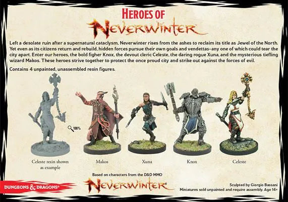 Inhoud verpakking: Meerdere resin helden miniaturen uit Heroes of Neverwinter (ongeschild, montage vereist).